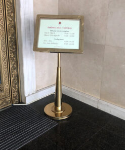 Chỉ dẫn cho khách hàng về nội dung cần thông báo và trình bày. Nó còn gớp phần tô điểm cho không gian trở nên sang trọng và lịch sự. Được làm bằng inox sang bong nên có thể dễ dàng làm sạch khi cần.