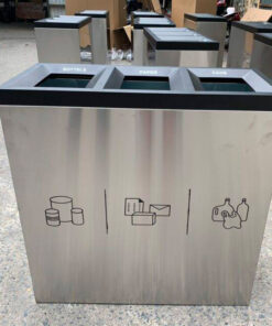 Thùng rác inox 3 ngăn, thùng phân loại rác 3 ngăn bằng inox, thùng rác inox cao cấp tại trung tâm thương mại GigaMall