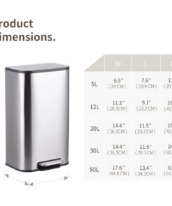 – Thùng rác inox đạp chân 20 lít hoạt động bằng bàn đạp chân, không cần dùng tay mở nắp